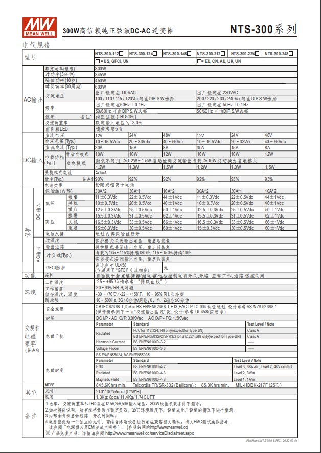 請點明緯原廠連結 →→→【NTS-300 300W純正弦波工業級逆變器數據】
