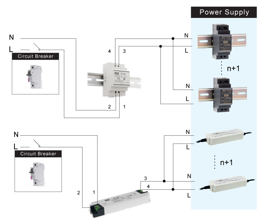 現在明緯提供了一個解決方案:ICL-28R/L系列,在AC斷路器後端加裝ICL不僅可替終端系統解決AC斷路器跳電,更可替系統端節省不少成本,是解決系統易跳電的一大利器 !