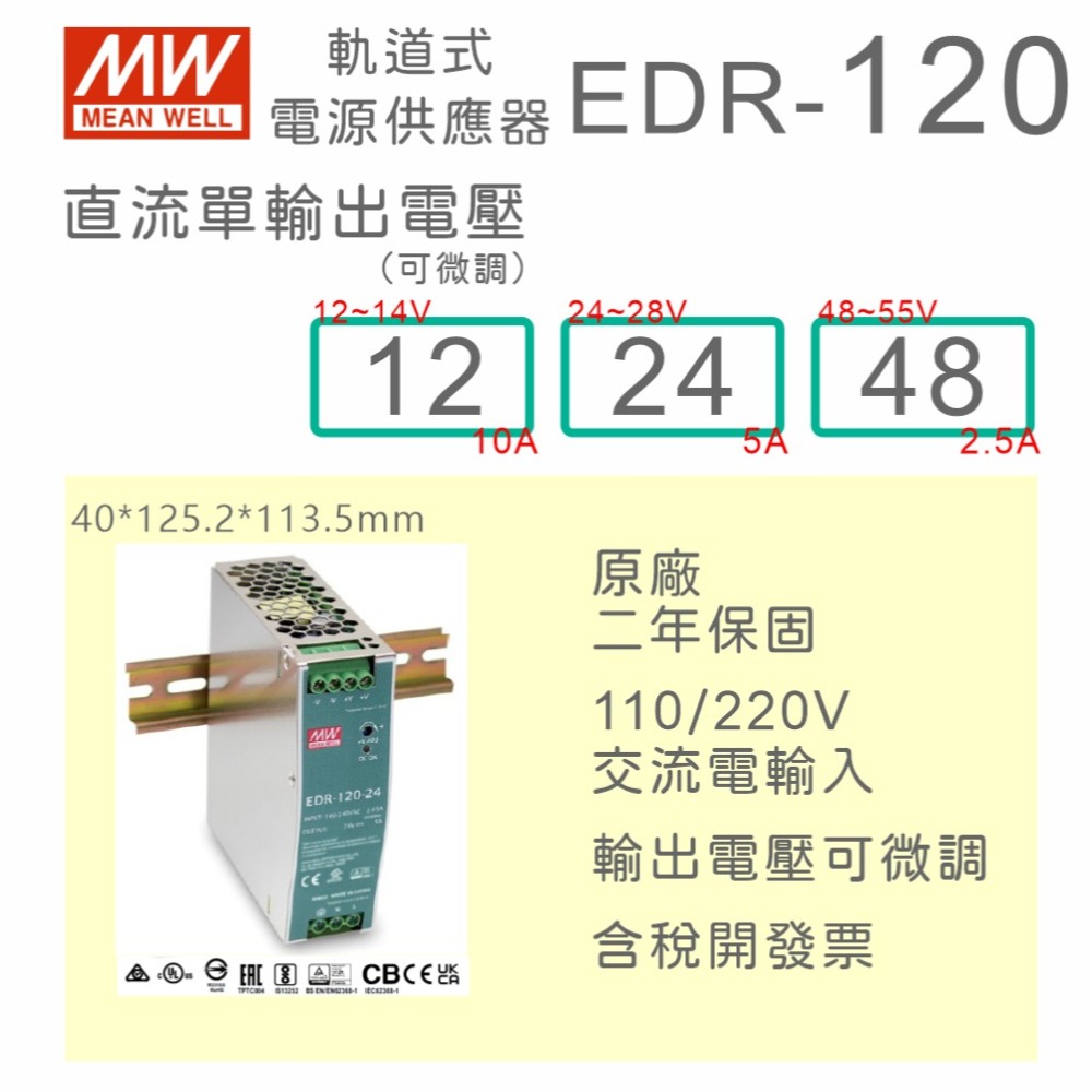 【保固附發票】MW 明緯 120W 金屬殼導軌式 電源 EDR-120-12 12V 24 24V 48 48V 變壓器