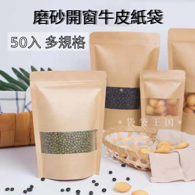 23*33+5cm 磨砂牛皮紙開窗自立袋28絲 大一斤 50入 重量:1050g (超商限4包)