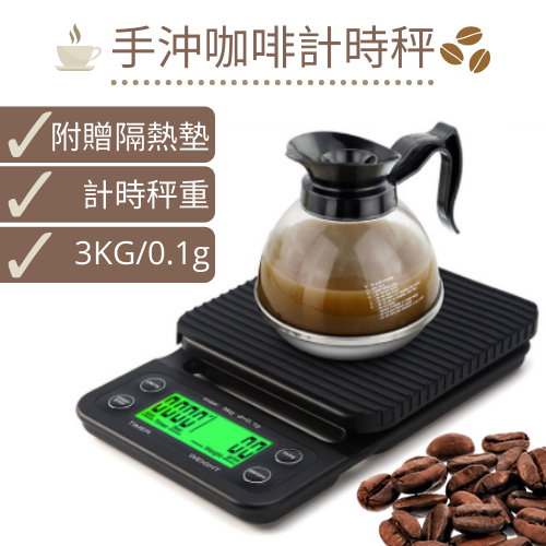 10.計時功能:計時長: 99 分 59秒(左邊按鈕)適用於手沖咖啡計重,承重3kg (右邊按鈕)