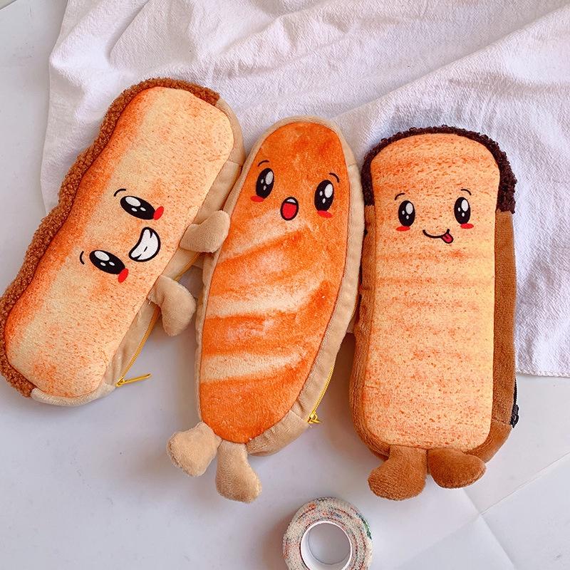 🎀【現貨+發票】韓版新款INS鹽系創意超火可愛吐司麵包零食筆袋毛絨筆袋毛茸茸毛絨絨大容量雙層絨毛筆袋收納袋化妝包鉛筆盒
