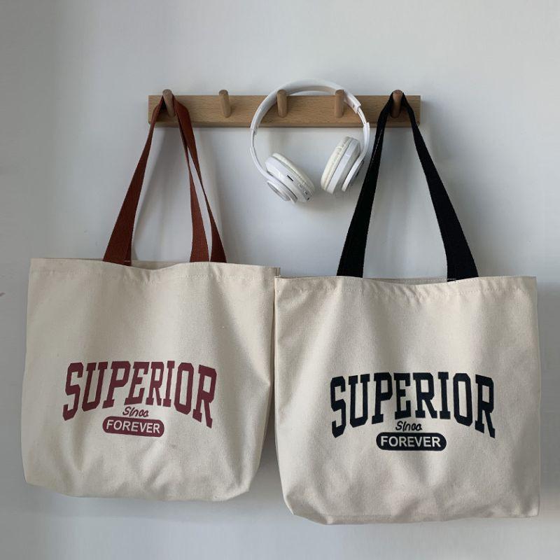 🎀【現貨+發票】韓國新款superior日系原創字母個性拉鍊帆布袋帆布包購物包單肩包側背包手提袋購物袋文藝文青復古小清新