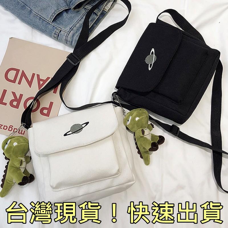 🎀【現貨+發票】韓國INS超火原宿飛碟星球帆布包兩用拉鍊帆布袋斜跨包帆布斜背包購物包肩背包側背包郵差包購物袋單肩包手機包