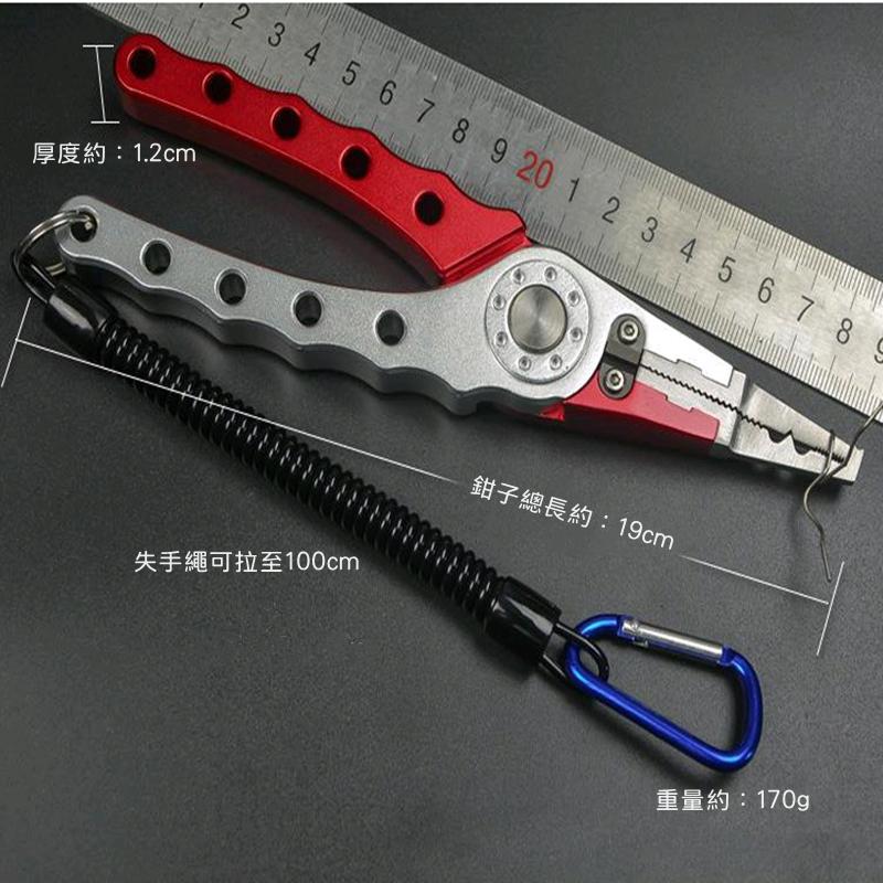 品名:平頭路亞鉗 材質:鋁合金 重量:170克 專用開大環路亞鉗,開環輕鬆好開 附贈失手繩 收納袋