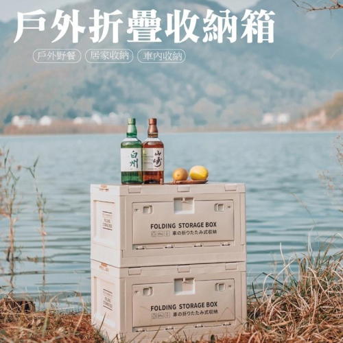 【Rising】(側開折疊收納箱)50L 車載收納箱 露營側開三門收納箱 車用整理箱 木蓋三開門折疊箱 附木板