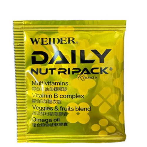 青少年,成人每日1次,每次1包,餐後配水食用。 一日請勿超過1包,多食無益 品名WEIDER 威德 一日補給+ 30包內容量/入數每盒30包商品重量87公克 (2.9公克 X 1 包) 成分(綜合維他命緩釋錠)乳糖,維生素C,羥丙基甲基纖維素(羥丙基甲基纖維素,水,氯化鈉),檸檬酸鈣,葡萄糖酸鋅,維生素E(維生素E,葡萄糖漿,辛烯基丁二酸鈉澱粉,二氧化矽),焦磷酸鐵(玉米澱粉,焦磷酸鐵,向日葵卵磷脂),阿拉伯膠,氧化鎂,保健食品專用膜衣(聚乙烯醇,滑石粉,羥丙基甲基纖維素,氧化鐵,二氧化鈦,聚乙二醇),二氧化矽,硬脂酸鎂,硒酵母,維生素A[葡萄糖漿,阿拉伯膠,玉米澱粉,維生素A醋酸酯,維生素E(抗氧化劑)],葡萄糖酸錳,維生素D3[辛烯基丁二酸鈉澱粉,蔗糖,L-抗壞血酸鈉(抗氧化劑),中鏈三酸甘油酯,二氧化矽,維生素E(抗氧化劑),維生素D3],綜合莓果萃取物(麥芽糊精,黑醋栗萃取物,藍莓萃取物,蔓越莓萃取物,巴西莓萃取物,黑莓萃取物,覆盆莓萃取物,草莓萃取物),葡萄糖酸銅 (綜合B群糖衣錠)乳糖,蔗糖,微結晶狀α-纖維素,磷酸氫鈣,重酒石酸膽鹼(重酒石酸膽鹼,二氧化矽),菸鹼醯胺,滑石粉,聚乙烯吡咯烷酮,二氧化矽,阿拉伯膠,本多酸鈣,硬脂酸鎂,明膠,聚乙二醇,保健食品專用膜衣(羥丙基甲基纖維素,羥丙基纖維素,聚乙二醇),γ-穀維素(γ-穀維素,米糠粉),維生素B2,維生素B6,維生素B1,二氧化鈦,食用黃色四號,葉酸,生物素,肌醇,棕櫚蠟,維生素B12 (蔬果酵母精華膠囊)微結晶狀α-纖維素,玉米澱粉,明膠,蔬果萃取物(綠咖啡萃取物,綠茶萃取物,青花菜芽濃縮物,洋蔥萃取物,蘋果萃取物,番茄濃縮物,青花菜濃縮物,卡姆果濃縮物,麥芽糊精,西印度櫻桃萃取物,巴西莓濃縮物,薑黃濃縮物,大蒜濃縮物,羅勒濃縮物,奧勒岡草濃縮物,肉桂濃縮物,胡蘿蔔濃縮物,接骨木濃縮物,山竹果濃縮物,黑醋栗萃取物,藍莓萃取物,櫻桃濃縮物,覆盆子濃縮物,菠菜濃縮物,紅山楸梅濃縮物,芥藍濃縮物,黑莓濃縮物,二氧化矽,山桑子萃取物,抱子甘藍芽濃縮物,葵花卵磷脂),訶子萃取物(訶子萃取物,麥芽糊精),余甘子萃取物(余甘子萃取物,氯化鈉,二氧化矽),β-聚葡萄糖(黑酵母發酵萃取物),接骨木莓萃取物[接骨木莓萃取物(具花青素),麥芽糊精],二氧化矽,硬脂酸鎂,發酵黑大蒜粉,硫酸月桂酯鈉,二氧化鈦,水,甘油,食用黃色四號,食用藍色一號 (複合植物油軟膠囊)亞麻仁油(具α-次亞麻油酸,油酸,亞麻油酸)350mg,葡萄籽油(具亞麻油酸,油酸)350mg,明膠,甘油,水 劑型錠劑 / 膠囊 / 軟膠囊 使用方式青少年,成人每日1次,每次1包,餐後配水食用。 一日請勿超過1包,多食無益。 保存方式請置於兒童不易拿取之處,避免光照,並存放於陰涼乾燥處。 保存期限以消費者收受日起算,至少距有效日期前30日以上 產地台灣 製造/進口商名稱福又達生物科技股份有限公司 製造/進口商電話0800-009-181製造/進口商地址台北市內湖路一段120巷16號4樓 注意事項 (1) 本產品含有植物原料,以及多種維生素礦物質,若有顏色變化或黑點屬正常現象,請安心食用。 (2) 本產品含有牛奶及其製品。 (3) 本產品含綠咖啡萃取物,12歲以下孩童,孕婦,消化不良與重大疾病患者不宜食用;含肉桂濃縮物,孕婦忌食。