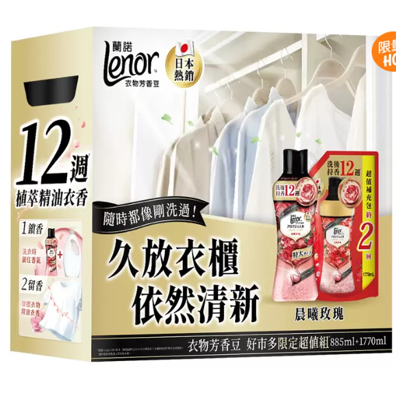 品名蘭諾 衣物芳香豆 晨曦玫瑰 885毫升 + 1770毫升補充包