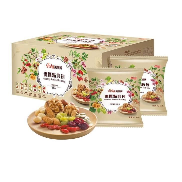 內含杏仁、蔓越莓乾、核桃、榛果、綠葡萄乾、枸杞及南瓜籽仁。 獨立包裝,方便攜帶 下午茶、野餐點心、郊遊旅行的最佳分享包 萬歲牌總匯點心包內含杏仁,蔓越莓乾,核桃,榛果,綠葡萄乾,枸杞及南瓜籽仁。獨立包裝,方便攜帶,適合下午茶,野餐,郊遊旅行。 品名 萬歲牌總匯點心包 42 公克 X 20 包 內容量/入數 42公克 X 20包 商品重量 840公克 成分 杏仁果、蔓越莓果乾(蔓越莓、糖、甘油、葵花油)、核桃、榛果、青葡萄乾、枸杞、南瓜子。 素食標示 (全素、蛋奶素) 全素 保存方式 為確保產品品質,產品請存放於陰涼乾燥處,開封後請冷藏,並請盡快食用完畢。 保存期限 270天 產地 台灣、美國(蔓越莓果乾)、中國(青葡萄乾、枸杞) 過敏原資訊 本產品含有堅果種子類製品。本產品與其他含有芒果、花生、小麥、燕麥、大豆、魚、甲殼類、牛奶、芝麻種子、二氧化硫的產品於同一工廠生產,食物過敏者請留意。 製造/進口商名稱 聯華食品工業股份有限公司 製造/進口商電話 0800-311-023 製造/進口商地址 桃園市龜山區大華里頂湖一街18號