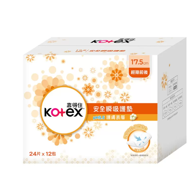 品名 : 靠得住 PH5.5安全瞬吸護墊 17.5公分 24片 X 12包