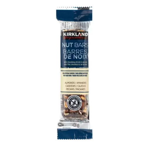 品名 Kirkland Signature 科克蘭 黑巧克力堅果棒 24入 / 960公克 內容量/入數1 商品重量 成分 成分:杏仁,黑巧克力風味外層[菊糖(菊苣根來源),糖,分餾棕櫚仁油,可可粉,大豆卵磷脂,鹽,全脂奶粉] ,腰果,果寡醣,葵花籽,糖漿(含蜂蜜,米糖漿),胡桃 ,脆米片(米粉,砂糖,碳酸鈣,鹽),海鹽,大豆卵磷脂。 保存方式 開封前請置於乾燥陰涼處,避免陽光直射,開封後請儘速食用完畢。 保存期限 270 天(商品依序出貨,收到商品時,所剩效有期間會較前述日期為短) 產地 加拿大 食品業登錄字號 A-196972798-00031-9 產品責任險契約字號 320008510449 過敏原資訊 本產品含有堅果類、牛奶及大豆製品。本產品工廠同時生產雞蛋,食物過敏者請留意。請注意可能含有堅果殼。 製造/進口商名稱 好市多股份有限公司 製造/進口商電話 449-9909(手機撥打請加02) 製造/進口商地址 高雄市前鎮區中華五路656號 注意事項 請注意可能含有堅果殼。