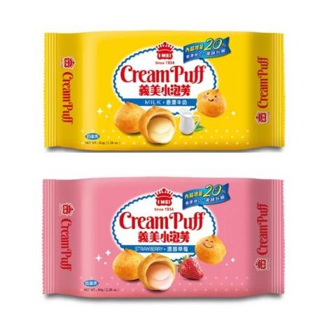 好市多商品分購-義美 小泡芙 香濃牛奶+濃醇草莓 64公克 X2入