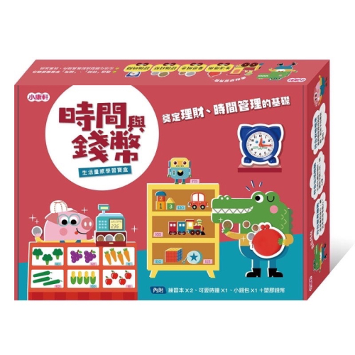 ★強打亮點3:趣味共64單元,觀念學習循序漸進 兩本學習書,可愛繽紛大圖與動物主角,活潑日常情境,引導基礎量感認知。 多元任務式解題,找一找、比一比、連一連,具體建立孩子生活中的時間、金錢概念。 │時間與錢幣──孩子的量感必修課,爸媽輕鬆教的生活學習寶盒! 玩具太貴是多「貴」? 等了好久是「多久」? 錢不夠是「不夠多少」? 時間的長短、金錢的多寡,是孩子從具體點數到抽象量感的關鍵認知門檻。 時間觀的建立,能進而理解白天到黑夜的分秒流逝,以及一日、星期、月份的時間管理。而,對錢幣的認知,能幫助掌握金額數量與價值,思考如何順利進行買賣,有助於從小培養存錢理財的好習慣。 本學習寶盒擁有最貼近生活的豐富題型,隨著精心設計的任務引導,搭配操作實際教具,有效輔助家長輕鬆帶領幼兒認識時間與錢幣,讓孩子的量感必修課充滿歡樂笑聲!
