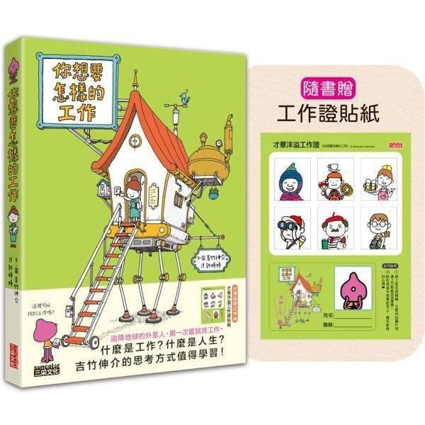 金句爆擊!吉竹伸介如何思考「工作」這件事 如果你遇到外星人,請向他說明: 「為什麼地球人要工作?」 找工作之前,要先了解自己的優點? 賺了錢要怎麼花?人生要怎麼過?全部都有關聯! 台灣版限定隨書特典【才華洋溢工作證貼紙】 【內容簡介】 迫降在地球的外星人,來到宇宙求職中心找工作。 他想知道工作是什麼? 如何找到喜歡的工作? 遇到不適合的工作該怎麼辦? 求職人員一共介紹了44種特別的職業,例如賞花服務生、玩具醫生、打領帶教師等。 最後,外星人會選擇怎樣的工作呢? 【求職中心的徵才資料卡】 001-飛天水果服務員 002-奇想織物裁縫師 003-打領帶教師 004-拋高高慶祝員 005-街頭藝術咖啡師 (......) 044-有求必應指引師 【哪些人需要這本書?】 讀書讀得頭很痛,沒有動力的學生。 社會新鮮人,找不到工作的畢業生。 對工作失去熱情,想找回初心的上班族。 想換工作,但不確定方向的人。 想幫助孩子認識各種職業的父母。 希望用有趣方式引導學生思考的老師。 整天無所事事,只想耍廢的人。 喜歡天馬行空、胡思亂想的人。 有創意,喜歡畫畫的人。 理性又帶點感性,想要生活有目標的人。 (……)總之,無論你是什麼人,都需要看一下! 【外星人抄筆記的金句,地球人也該知道】 所謂成熟的大人,無論從事怎樣的工作,都能夠用自己的方法找到快樂! 適合自己的事,必須用全身來感覺,光用頭腦是想不出來的! 我還沒找到想做的工作耶……就算沒找到也沒關係喔!最重要的是「開始」。 無論什麼工作,都能從中「學到東西」。 如果累了怎麼辦?那就休息啊! 【書籍特色】 ★超人氣插畫家自寫自畫,達成創作新高度。 ★對人事物的細微觀察力,隨時隨地深度思考。 ★培養正能量的價值觀,解決生活的各種焦慮。 【隨書特典】才華洋溢工作證貼紙 \日本獨家授權‧三采團隊精心設計/ 1.寫上姓名與職稱,方框內的圖片可選上方貼紙自由更換。 2.貼在悠遊卡或筆記本上,每天都有好心情 3.尺寸:12x16.5公分 【吉竹伸介的趣味工作占卜】 10秒測出,你適合怎樣的工作? 說不定能幫你找到人生方向喔!