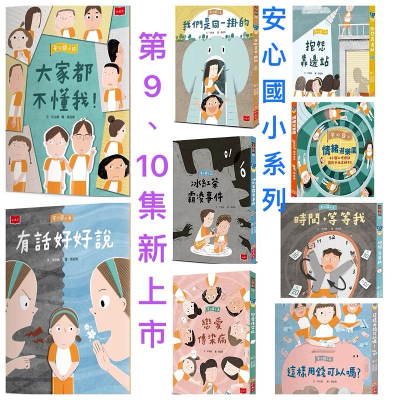 適讀年齡:7歲~12歲 小學生的煩惱特效藥 孩子的第一套社會情緒學習套書 貼近孩子的橋梁故事書+心理遊戲書 化解孩子校園生活的疑難雜症 安心國小系列以故事和遊戲回應>>> 所有孩子想破頭,卻不知如何求助的大小煩惱; 所有家長好煩惱,卻不知如何幫助孩子解決的生活困擾。   簡單五步驟,每天開心上學趣   STEP1 先閱讀故事內容   STEP2 和家人、朋友一起討論故事情節   STEP3 思考故事與自身生活的連結   STEP4 共同討論面對問題的因應方式   STEP5 透過遊戲邊玩邊學,養成好EQ   《安心國小1:我們是同一掛的》   關於拒絕的故事,學會溫柔而堅定的拒絕。   華彤轉學第一天,卻被「緊張」和「害怕」纏住,這時來了一個留著小短髮的同學,熱情的帶領她認識新環境,她說她們是「同一掛的」,這是什麼意思?小短髮要求華彤做的事愈來愈奇怪,華彤好想拒絕,但她就是說不出口,她很怕會失去這個朋友,卻也愈來愈不知道自己是誰了。   《安心國小2:冰紅茶霸凌事件》   關於霸凌的故事,聽見被霸凌者的聲音。   馬信身上總是飄著一股海的味道,除了爽朗的翔豪,他幾乎不和別人說話,他是他的擴音器、翻譯機,他們一起品嚐夏天的冰紅茶,一起玩官兵抓強盜,甚至一起被主任叫去學務處聽訓。翔豪漸漸發現,其實馬信很聰明,他還發現,馬信身上常常帶著大大小小的傷痕,這是怎麼回事?   《安心國小3:戀愛傳染病》   關於戀愛的故事,用平常心去感受愛。   子馨戀愛了!她暗戀的對象是新來的社會老師,不過這個祕密連她的好朋友華彤都不知道,卻因為這份喜歡,她愈來愈用功、成績突飛猛進。像是會傳染似的,班上同學很有默契的紛紛談起戀愛,愛的小紙條滿天飛,有人談得轟轟烈烈,驚動家長老師;有人談得甜甜蜜蜜,卻莫名的劃上句點;也有人對戀愛毫無興趣,常常練習拒絕的藝術。戀愛到底是好東西,還是一種傳染病?   《安心國小4:抱怨靠邊站》   關於抱怨的故事,練習更好的溝通方式。   冠修覺得自己是個倒楣鬼,常常抱怨個不停:他在學校老是被記名字;在家裡,弟弟一天到晚在告他的狀、媽媽隨時在訓話;好不容易當上班長,卻創下史上最短任期紀錄!最後在「死老鼠攻擊」事件後,他開始試著說話轉個彎,將抱怨改成讚美,沒想到不只讓自己心情轉彎,倒楣鬼人生好像也有了一百八十度的轉變!   《安心國小情緒遊樂園:23個心理遊戲讓孩子玩出好EQ》   情緒教育專家 楊俐容 帶領心理師團隊精心設計   千呼萬喚,全球首創的社會情緒學習SEL遊戲書終於問世,   讓孩子邊玩邊學、養成好EQ!   社會情緒學習,是在學什麼?無論是內心小劇場無限加演的敏感小孩、不懂他人心而一直踩線的無辜小孩,或是常因雞毛蒜皮的小事一秒變身火山爆發雞的愛生氣小孩,來吧、來吧!《安心國小情緒遊樂園》適合每個孩子來玩,讓孩子從小遊戲玩出情緒大能力:   ★我的情緒,我能覺察。   ★他人的情緒,我能覺察,進而有良好的互動。   ★我的決定,我自己負責。  《安心國小5:時間,等等我》 孔守仁不只是籃球高手,還是個天才小畫家,卻常常在跟時間賽跑。他想滿足一時的欲望—跟同學一起玩手機遊戲,又必須兼顧其他任務—無論是他不喜歡的打掃工作,還是他其實很喜歡的圖畫創作。他身旁有完全沉迷在網路世界的林信佑,也有總是能妥善安排時間的孫華彤,在觀察大家怎麼做的過程中,他發現自己如果想得到最大的滿足,就是得取捨、決定事情的優先順序,並且在既定的時間內完成。問題是,他真的做得到嗎?該怎麼做呢?   《安心國小6:這樣用錢可以嗎?》 林靖茹是個節儉的小孩,因為覺得媽媽賺錢辛苦,她盡可能不花錢,甚至連校外教學她都想放棄。同班的洪承穎恰好相反,常常帶昂貴的用品到學校,炫耀家裡的寵物,是班上的風雲人物。兩人反映出截然不同的金錢觀,一個幾乎是一毛不拔,另一個是花錢大手大腳卻不懂得愛惜東西。後來他們都有了改變,承穎驚覺他花錢的極限;靖茹則突破她省錢的盲點,發現如果能好好用錢,不只能傳達美好心意,還能完成心願。原來存錢是好事,花錢更是一門學問。 安心國小7:我就是想贏! 我就是想贏,一次都不能輸! 王君豪自信滿滿,相信自己樣樣都會拿第一!沒想到最近舉行的各種比賽和考試,他不是沒得第一名,就是比輸了,或是分數很差。君豪不喜歡輸的感覺,還把怒氣發洩在同學身上;即使是老師規勸的「勝而不驕,敗而不怨」這句話,他好像也沒聽進去,一氣之下,竟然用球打傷了人……這下該怎麼辦才好?輸贏真的沒關係嗎?不管參加任何競賽,不就是非贏不可、一次都不能輸嗎? 《安心國小8:又不是我的錯!》 只要說「對不起」,就算道歉了嗎? 林信佑和李偉達的個性截然不同。不管遇到什麼事,信佑都悶在心裡,即使腳痛也不敢告訴老師;他的心事就像他的書包一樣,從來不好好的整理,愈積愈沉重!活潑的偉達喜歡找信佑玩,所以常常亂開玩笑,因此不斷闖禍,但每次只會不停的說「對不起」,卻沒想到要改正自己的行為。兩人之間的誤會愈來愈深,關係也愈來愈糟……說出「對不起」,真的就算道歉了嗎? 國小中年級開始是「良知」發展的重要時期。我要特別推薦岑澎維老師的這本新作給所有會針對道德觀念進行反思的孩子,以及所有關心品格教育的師長。岑老師以孩子非常熟悉的生活情境和對話,輕鬆帶出「道歉」這個嚴肅的主題,更在故事的起伏變化中,不著痕跡