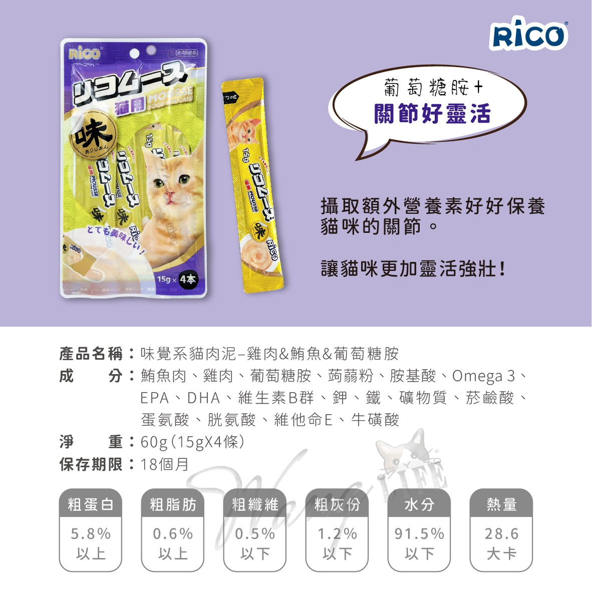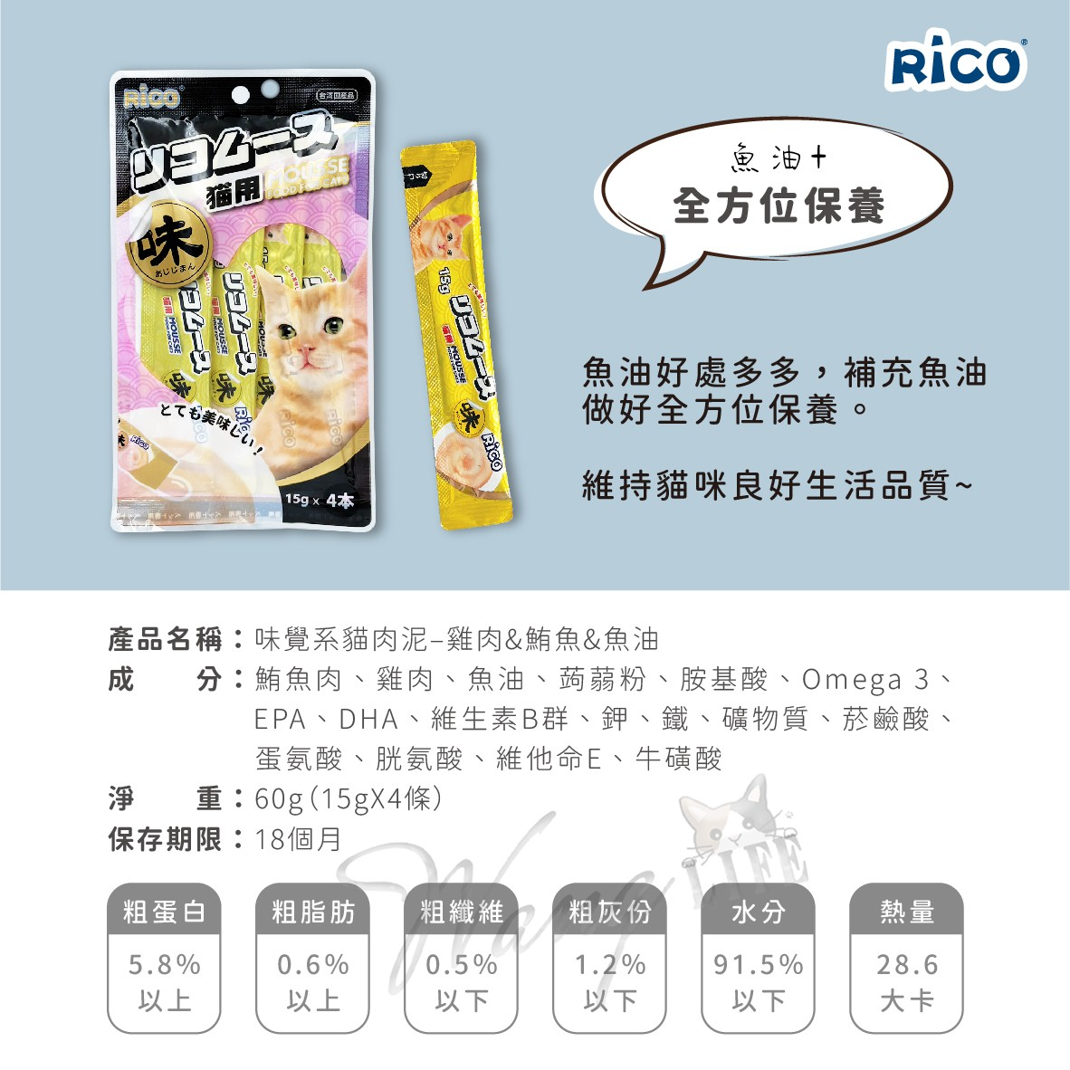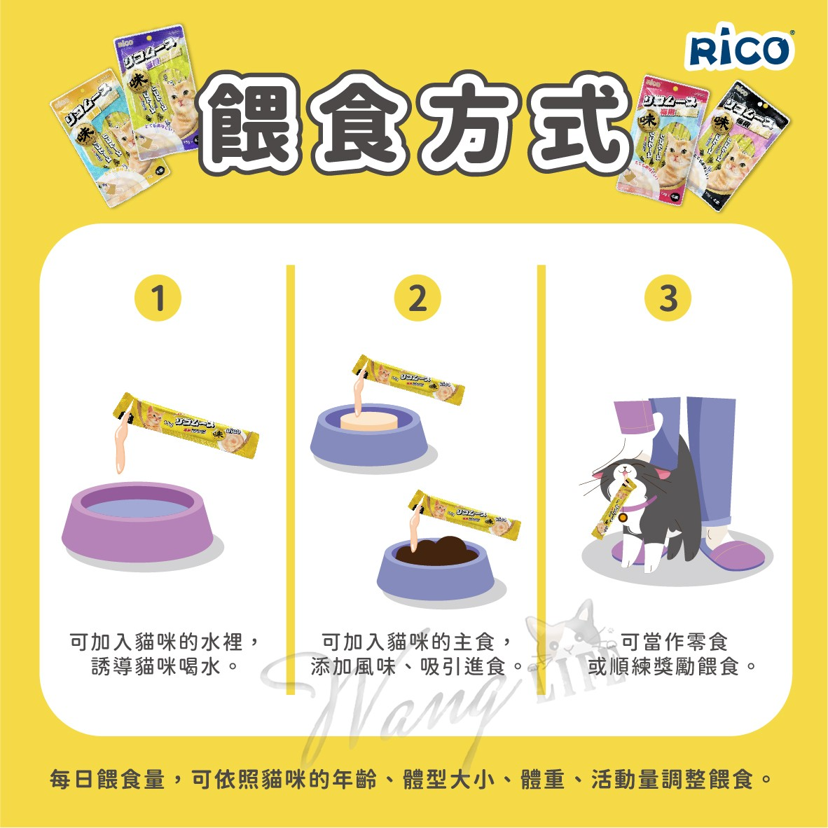 👉【購買提示】每包內含4條裝,每條約15克。適用於所有貓咪。請確保貯存於陰涼乾燥的地方。