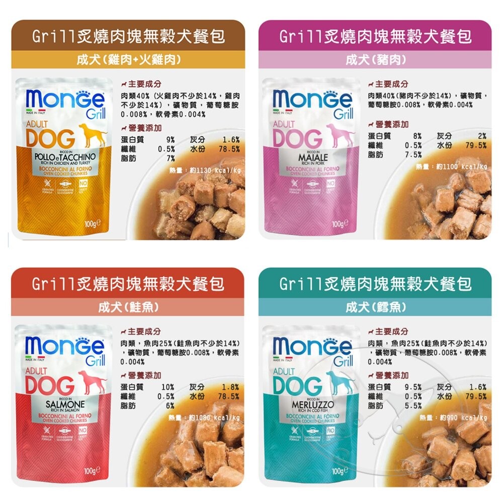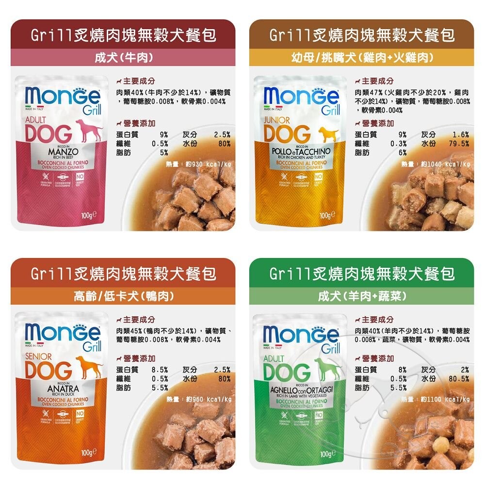 標籤:#Monge, #Grill炙燒肉塊無穀主食狗餐包, #100g, #狗餐包, #主食餐包, #無穀餐包, #犬餐, #寵物食品, #瑪恩吉, #Grill, #狗罐, #寵物餐包, #犬用主食餐包, #補水餐包