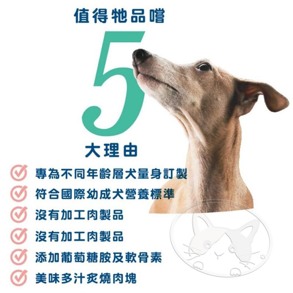 口味:【幼母挑嘴犬】雞肉+火雞肉, 【成犬】牛肉, 【成犬】羊肉+蔬菜, 【成犬】豬肉, 【成犬】鮭魚, 【成犬】雞肉+火雞肉, 【成犬】鱈魚, 【高齡低卡犬】鴨肉