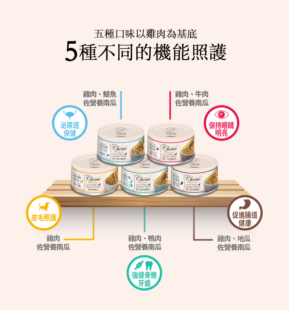 ▲ 五種口味,滿足不同適口需求,四種保健機能全方位補充營養