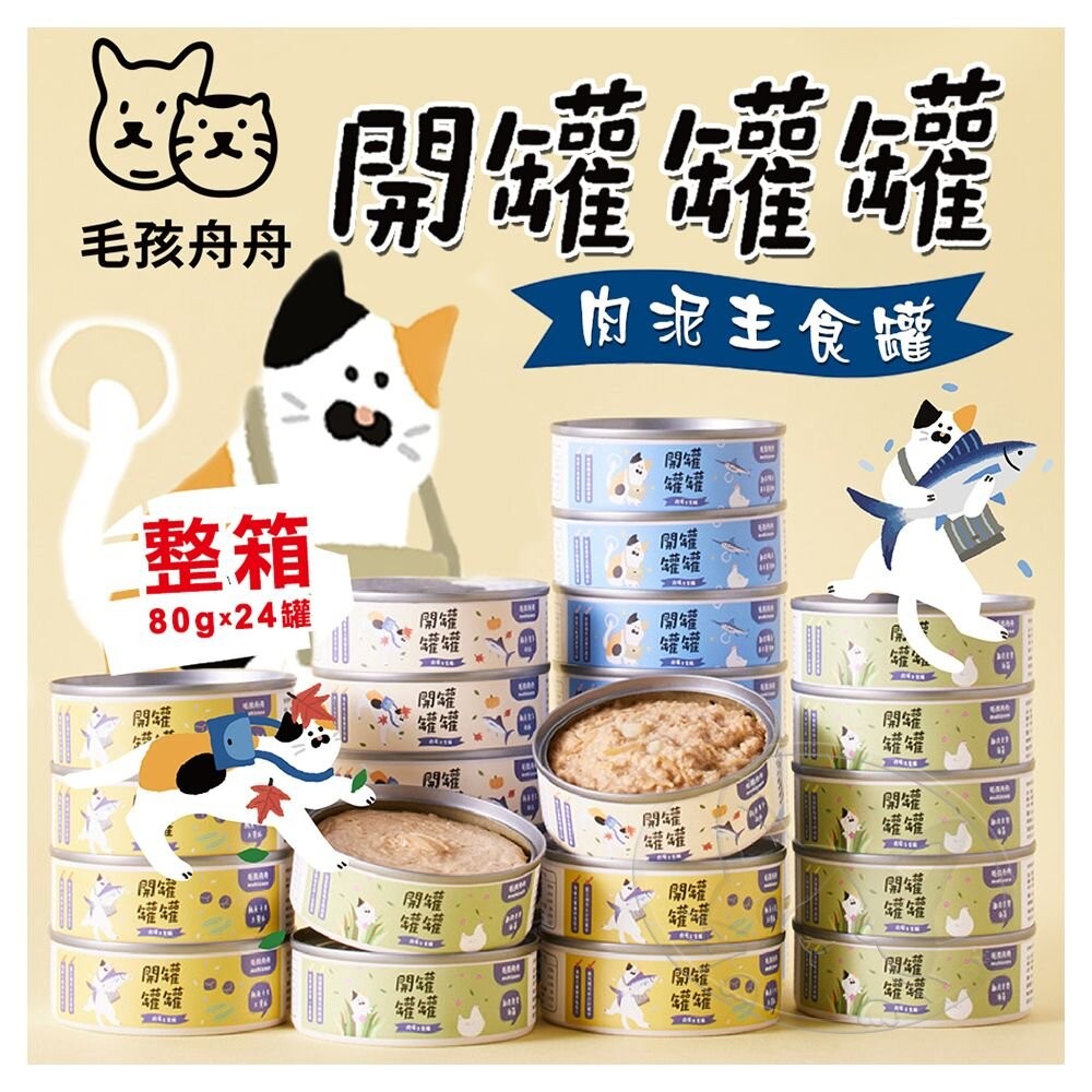 商品名稱:毛孩舟舟 開罐罐罐 ! 肉泥貓主食罐 80g 【箱購24入組】貓罐頭 貓主食罐