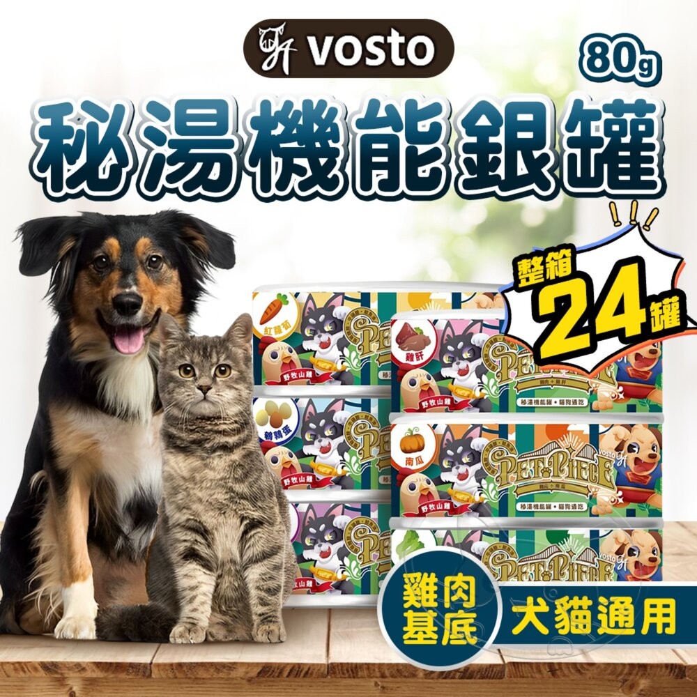 商品名稱:VOSTO 秘湯機能銀罐 80g 【犬貓適用】【整箱24入】秘湯銀罐 鮮肉罐