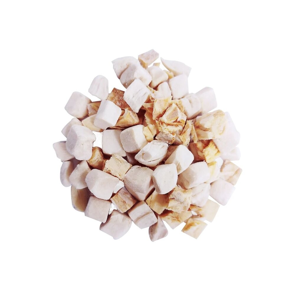 使用方式:直接餵食或加水即可還原成鮮食,食用同時請攝取大量水分。 可當作零食或加入乾糧混合餵食。