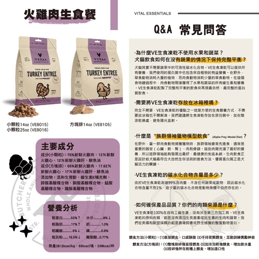 🔸成分:65%新鮮火雞肉、17.62%新鮮火雞心、17%新鮮火雞肝、鯡魚油