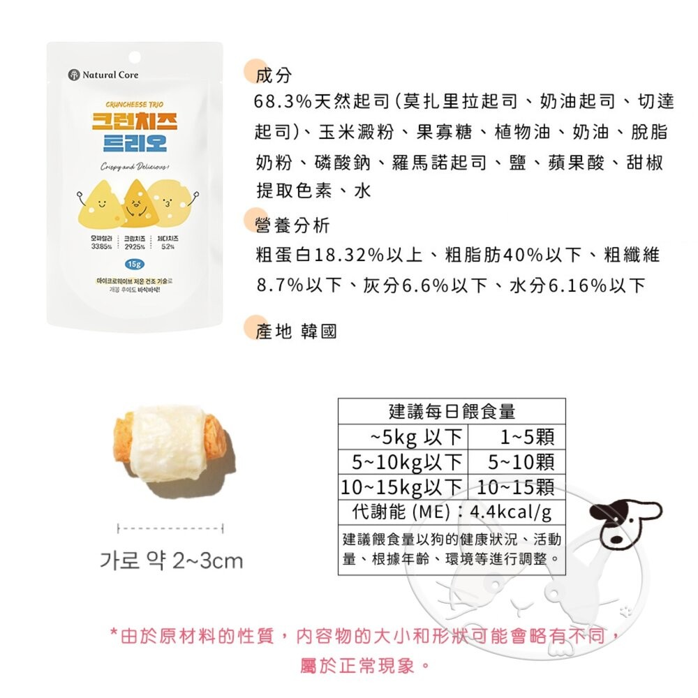 商品名稱:韓國 NATURAL CORE 自然核心 起司捲心餅乾 狗零食 狗起司 狗餅乾