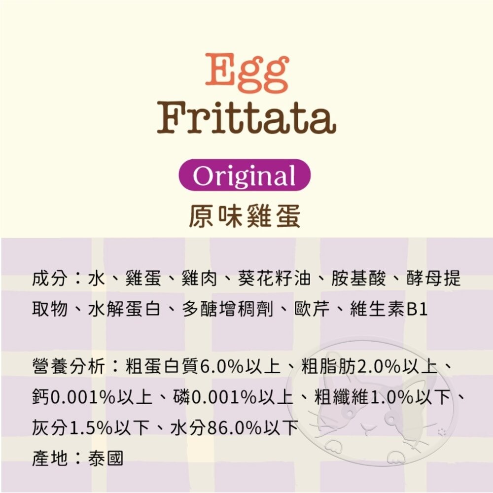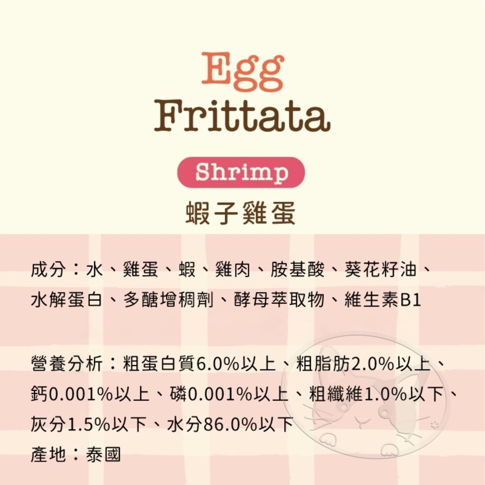 口味:原味雞蛋 85g, 蔬菜雞蛋 85g, 鮭魚雞蛋 85g, 蝦子雞蛋 85g