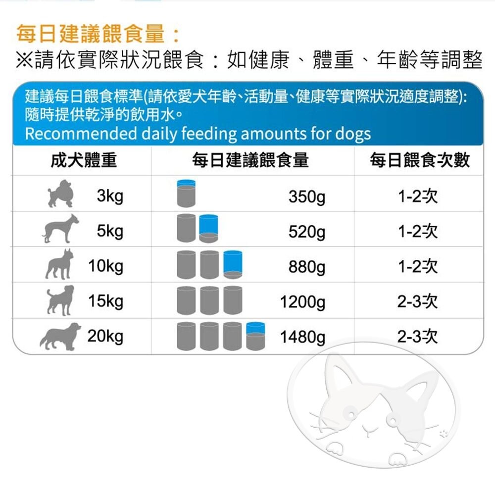 成犬體重 每日建議餵食量 每日餵食次數