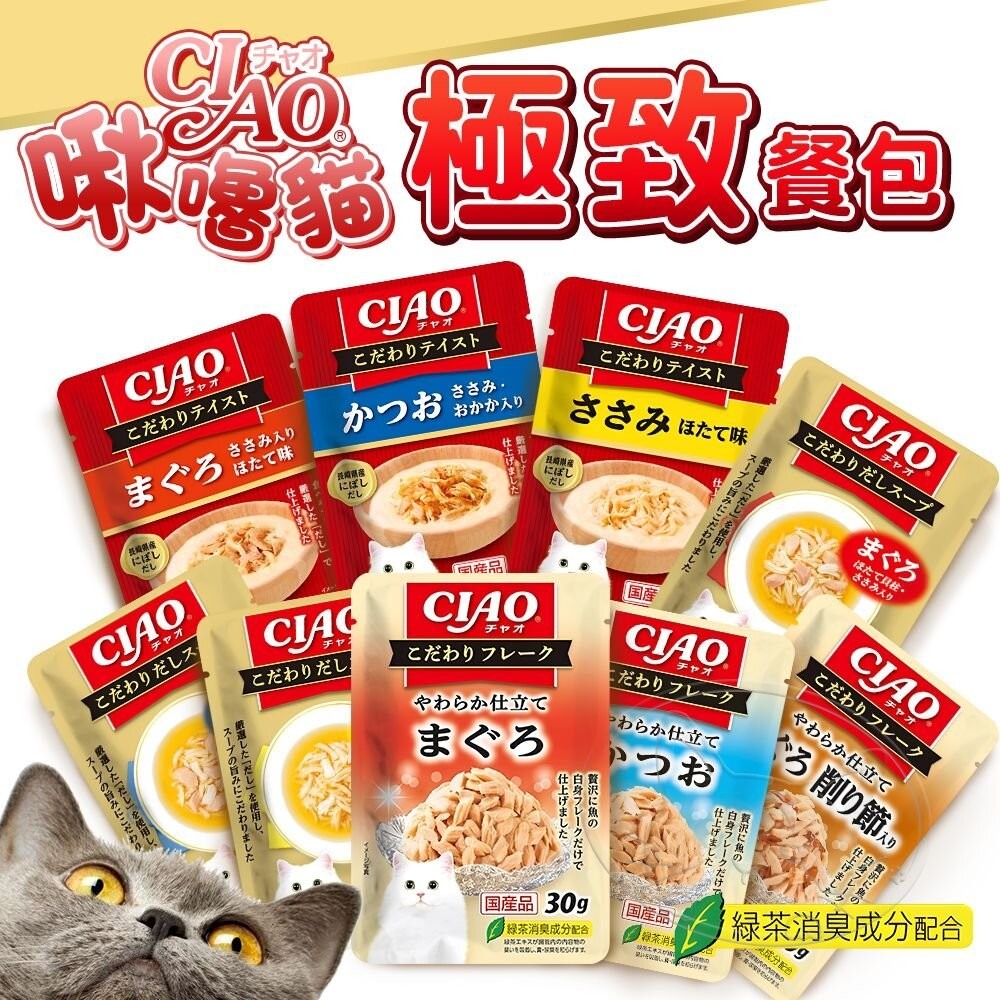 商品名稱:CIAO啾嚕 極緻餐包系列 CIAO 餐包 30g 寵物餐包 貓咪餐包 貓餐包 貓罐