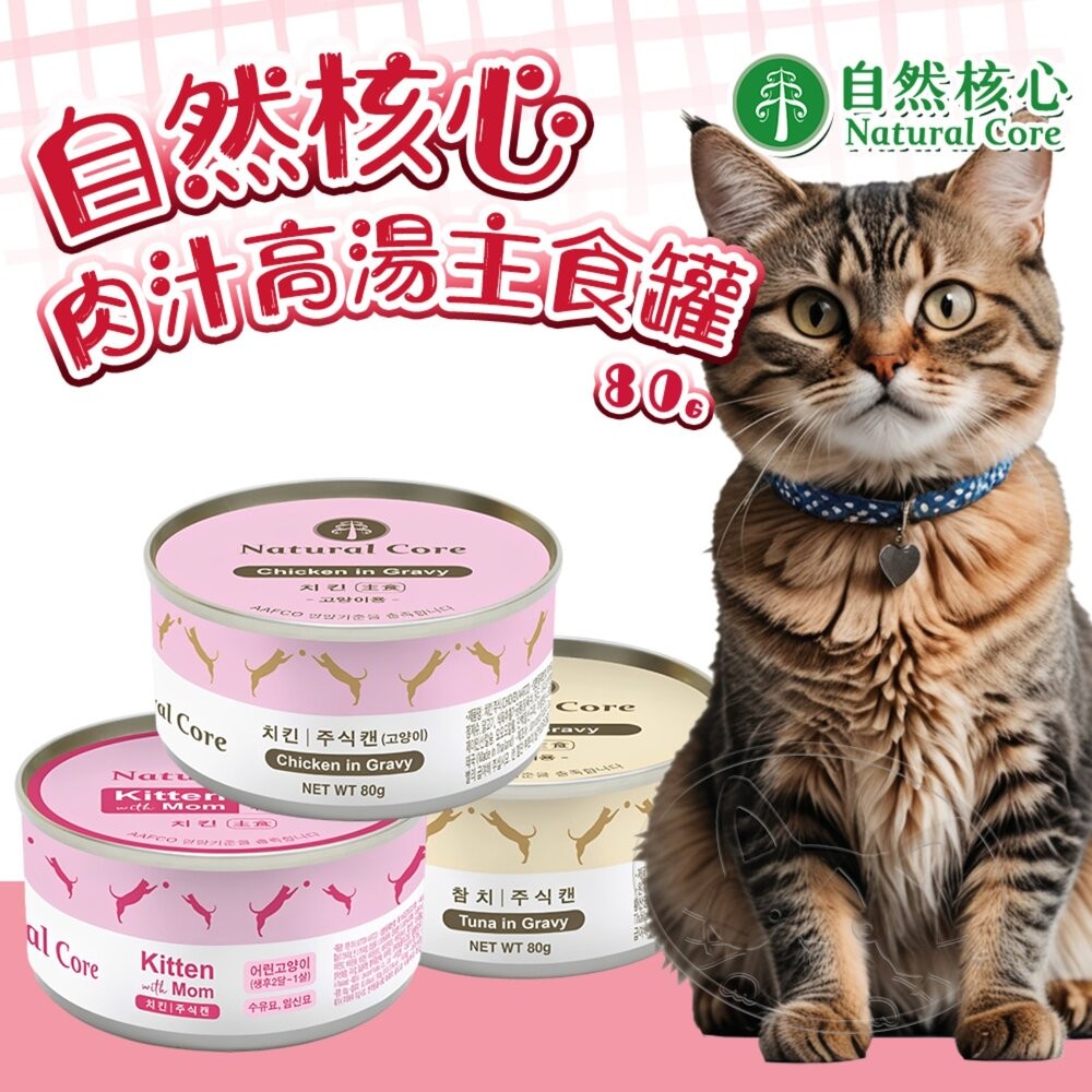 商品名稱:韓國 NATURAL CORE 自然核心 肉汁高湯主食罐 80g 貓罐頭 貓主食罐 雞肉 鮪魚 貓罐