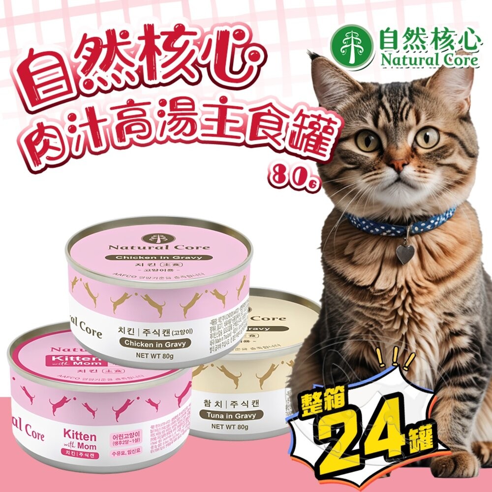 商品名稱:韓國 NATURAL CORE 自然核心 肉汁高湯主食罐 80g 24入/箱 貓罐頭 貓主食罐 貓罐