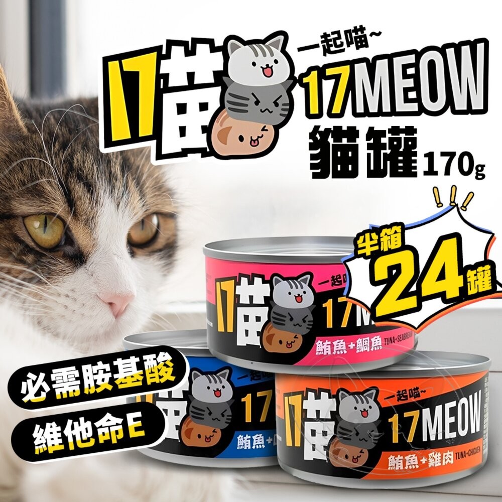 商品名稱:17MEOW 17喵 貓罐 170g 24入/半箱 紅肉罐 貓咪罐頭 副食罐 浪浪罐 補水罐