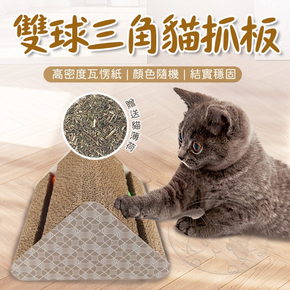 標籤:#雙面單槽三角瓦楞貓抓板, #寵物玩具, #貓抓板, #三角貓抓板, #雙邊鈴鐺球設計