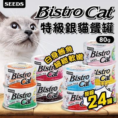 商品名稱:Bistro Cat特級銀貓健康餐罐 貓餐罐 副食罐 80G/24入 寵物罐頭 膠凍罐 鮪魚基底