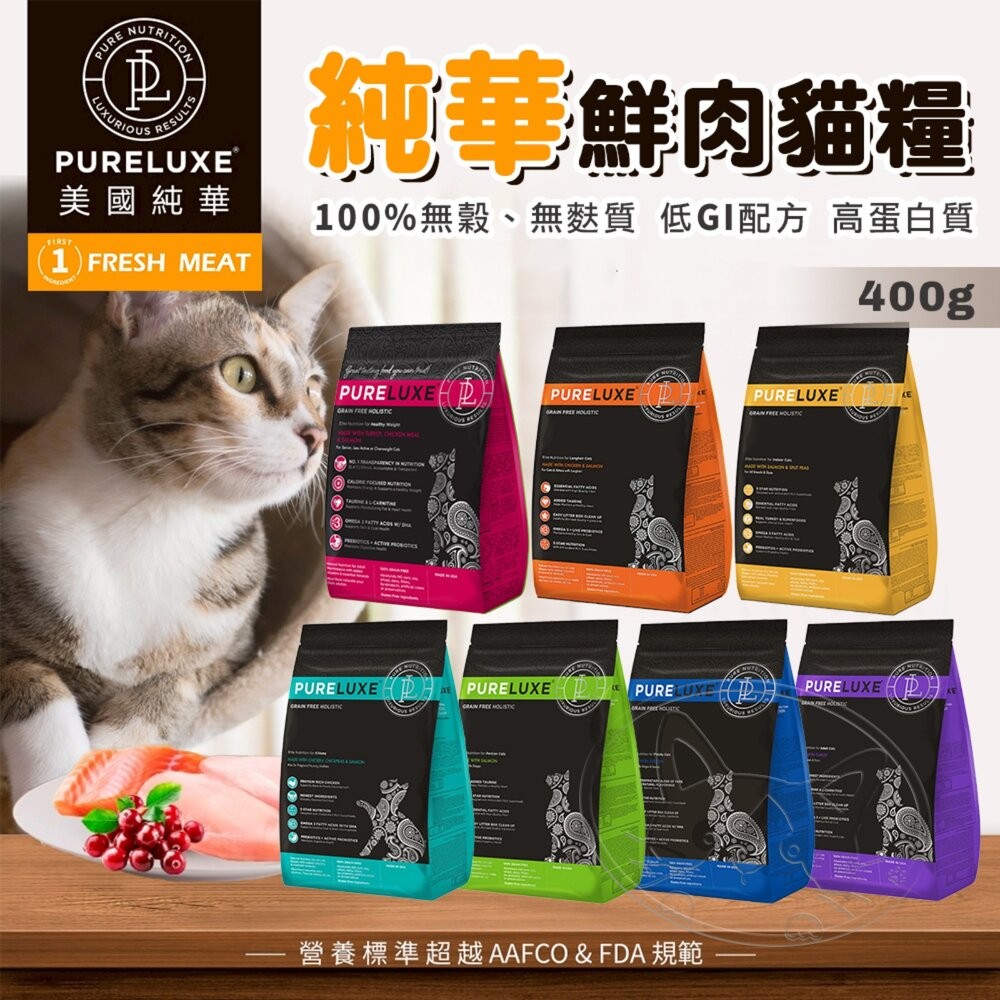 商品名稱:純華 PURELUXE 鮮肉貓糧 無榖飼料 400G 寵物飼料 貓飼料 鮮肉無穀
