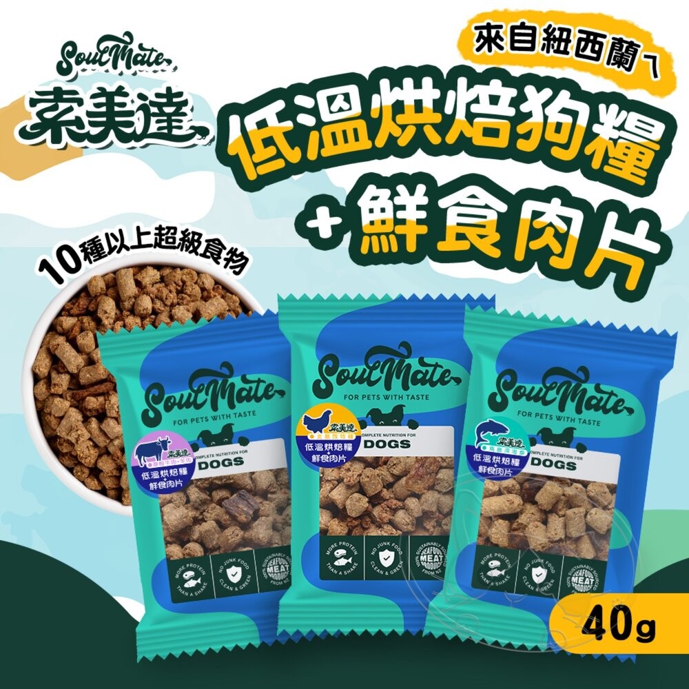 商品名稱:SOULMATE 索美達 紐西蘭低溫烘焙糧+鮮食肉片 40G 狗糧 狗飼料 狗肉片