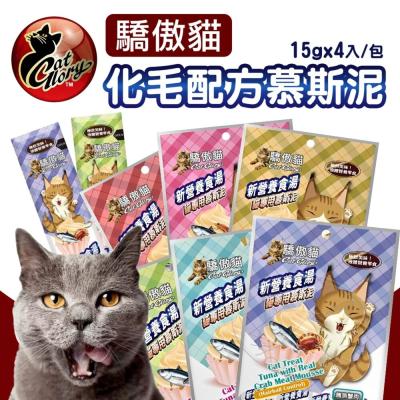 商品名稱:Cat Glory 驕傲貓化毛配方慕斯泥(貓專用) 4條/包 貓肉泥 貓咪點心 6種口味