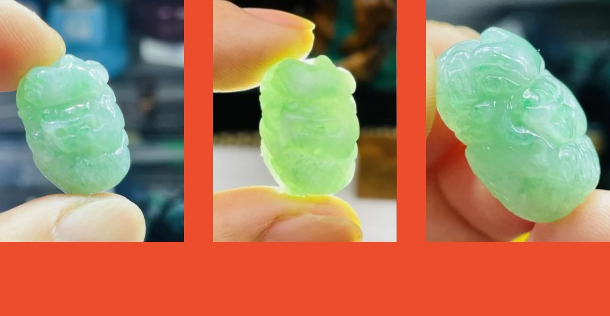 整顆冰膠潤色辣起光感 無紋裂摳 手工360度環繞微雕一條龍 上下通孔