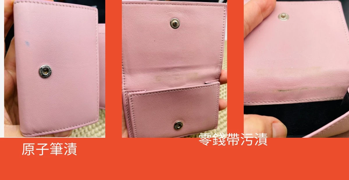 零錢袋有使用痕跡帶小污漬 三折鈕扣處有一原子筆漬