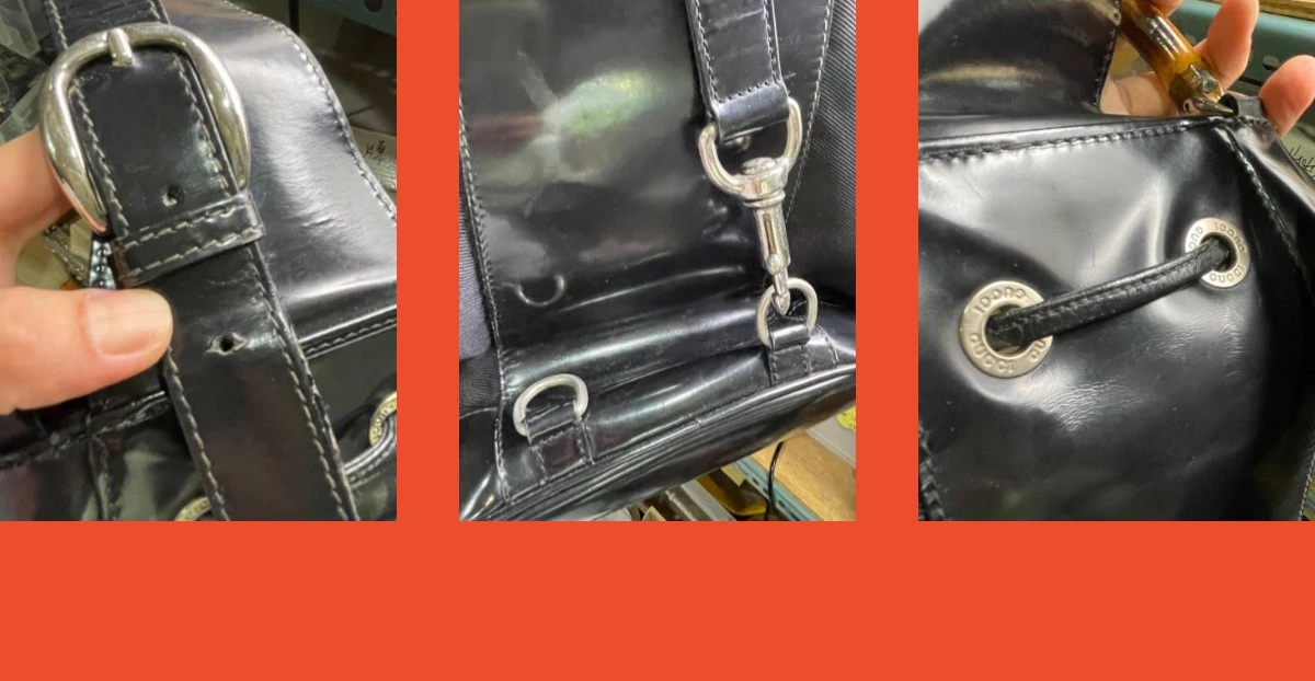 竹節把手完整 背帶有磨損一條5~6cm脫線 不影響使用需自行送車縫 以上如圖如視頻