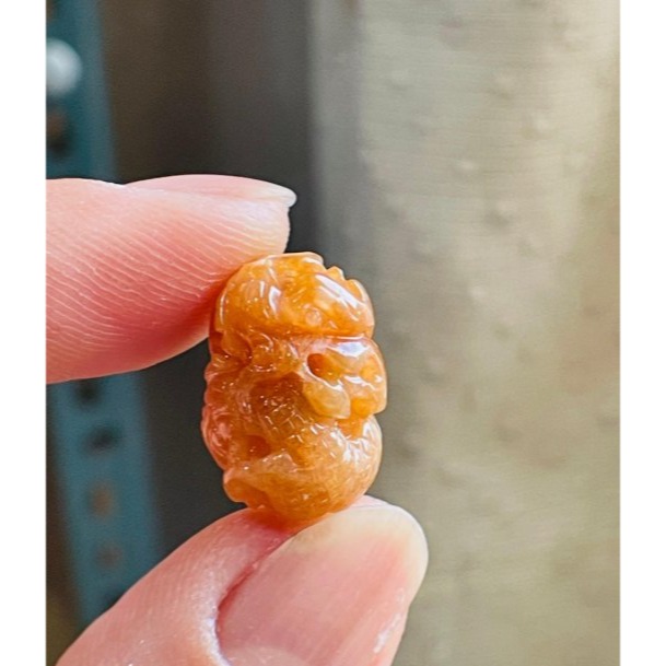 天然過渡無燒色 無紋裂摳 手工360度微雕一條龍 上下通孔