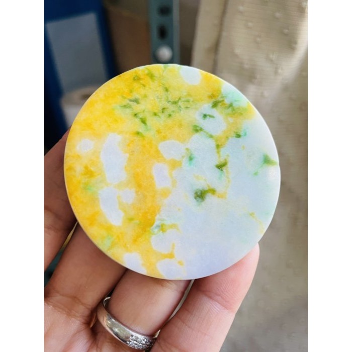 商品狀況:糯種 全透光 老三彩 種老紫黃綠鮮豔色明 種地偏糯色美 陽綠花及海苔色花全過底