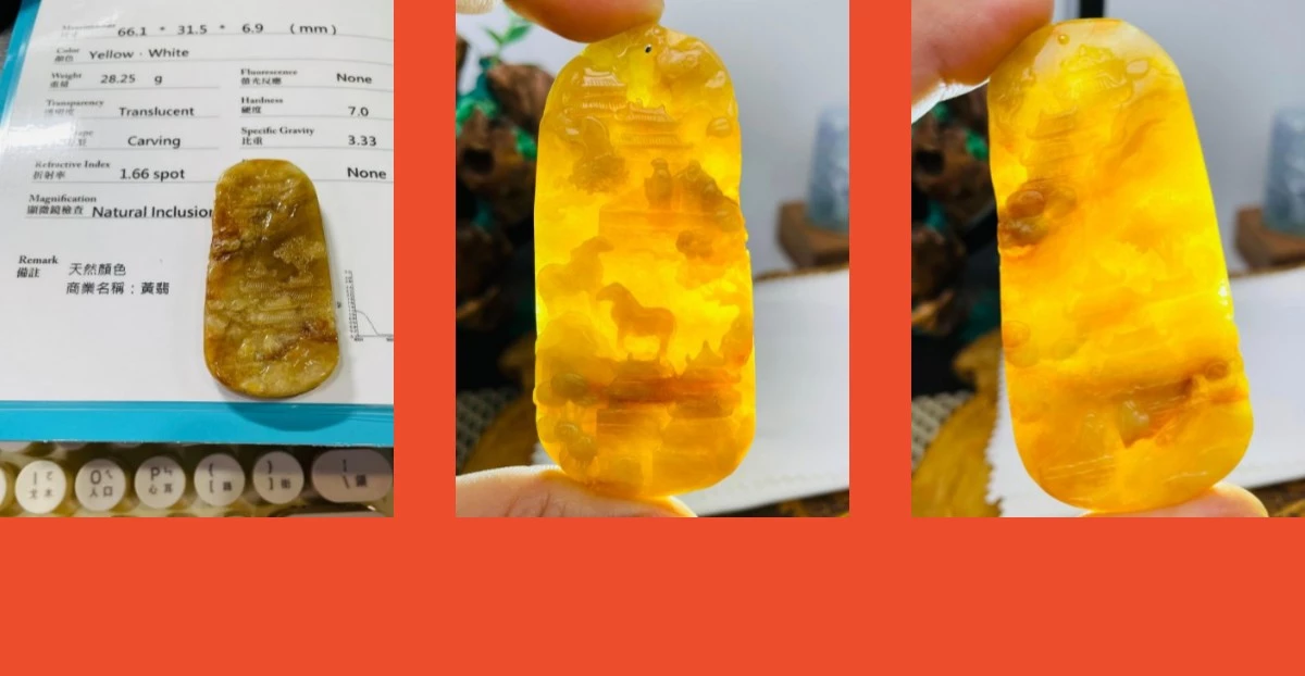 老熟過渡勻稱起冰黃霧層 滿黃底穿插過底漸變紅 無天然過渡漸變無燒色 透亮油潤佳