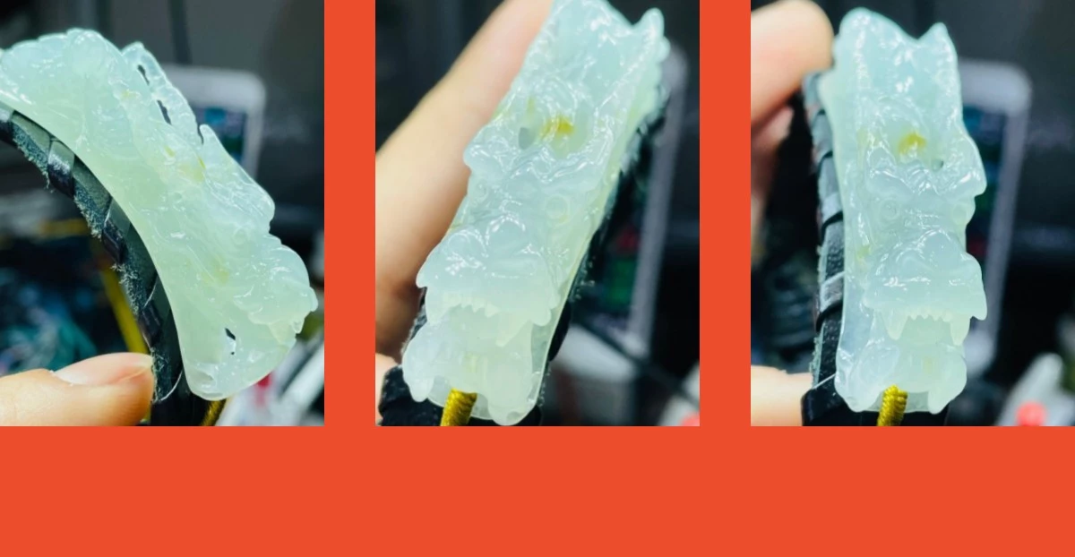 冰芙蓉底庄膠潤起光感 全立體鏤空純手工雕作 龍麟清晰立體 霸氣龍首龍角