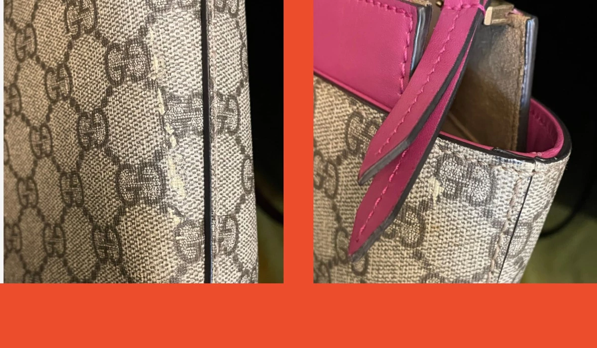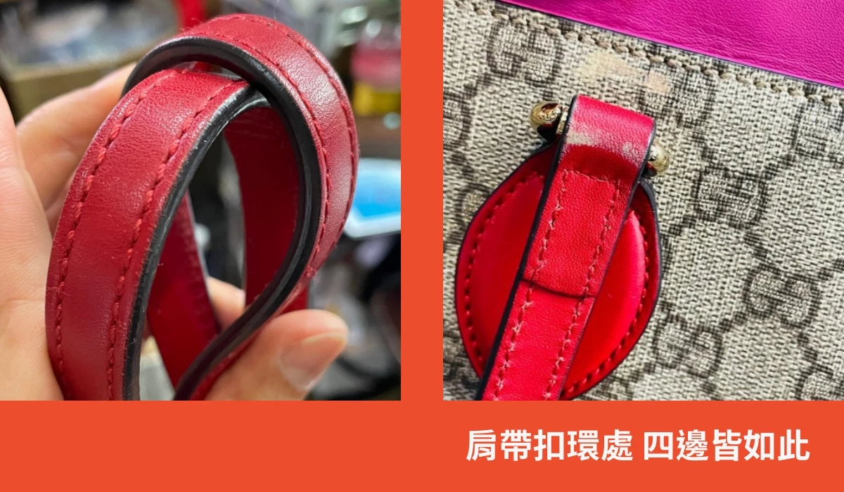 經典GG logo 咖色防刮皮 桃紅+紅牛皮滾邊肩帶 全開式拉鍊