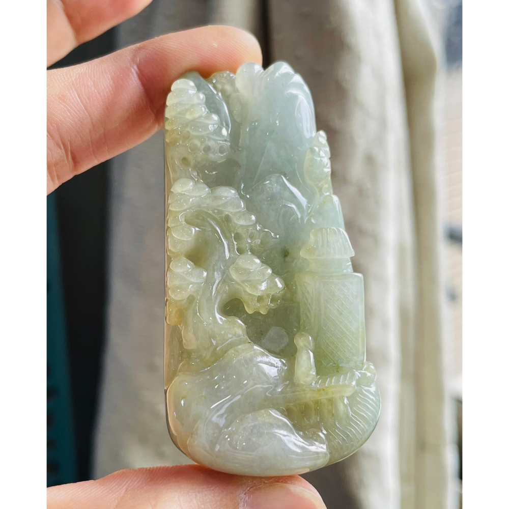 膠潤淡色油青肉帶微色花帶灑金 起冰薄黃霧巧雕發財樹 厚度足透手影