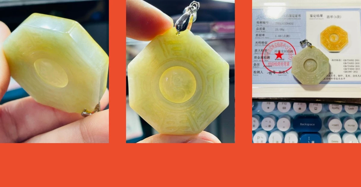 商品狀況:細糯種 溫潤油黃雙彩 老種黃翡料肉細緊緻細膩無晶體結構無沙坑眼