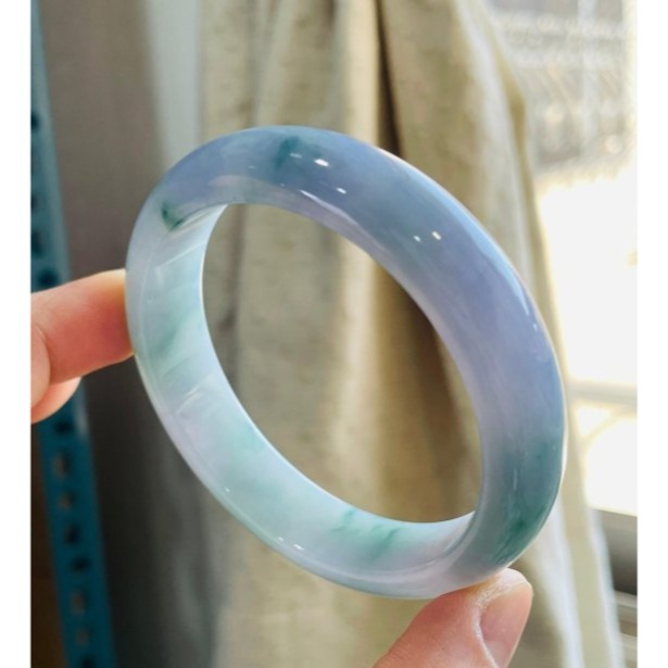 整圈膠潤紫綠濃艷 帶一條無外裂淺紋無摳 影片有特寫 厚裝寬版漂亮正圈鐲型